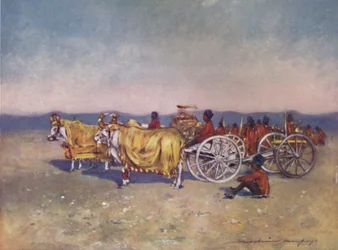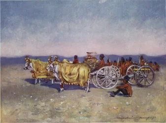 horizon · animal · les gens · mâle · groupe · événement · homme · hommes · indien · réunion · pays · type · crépuscule · couleur · couleur · argent · boeuf · durbar · guerre · canon · endroit · siècle · éloigné · concept · heure · delhi · boeufs · les années 1900 · 20ème siècle · armements · gujerat · baroda · portrait · delhi durbar · gold colour · king of great britain and ireland · edward vii · prince of wales · prince edward · king edward vii · edward vii · wettin · prince albert edward · dorothy · mortimer l menpes · mortimer menpes · queen alexandra · alexandra · menpes · menpes · mortimer l · mortimer luddington menpes · adam and charles black · black · adam and charles · british india · dorothy menpes · The Print Collector/Heritage Images