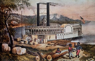 | Chargement du coton sur le Mississippi(Loading Cotton on the Mississippi)N. and Ives J.M. (1824-95) Currier |