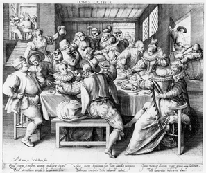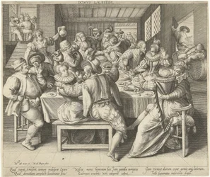 Une maison pleine de fête(Een huis vol feestrumoer Domus Laetitiae (title on object))Nicolaes de Bruyn(print maker),Maerten de Vos(after design by) |