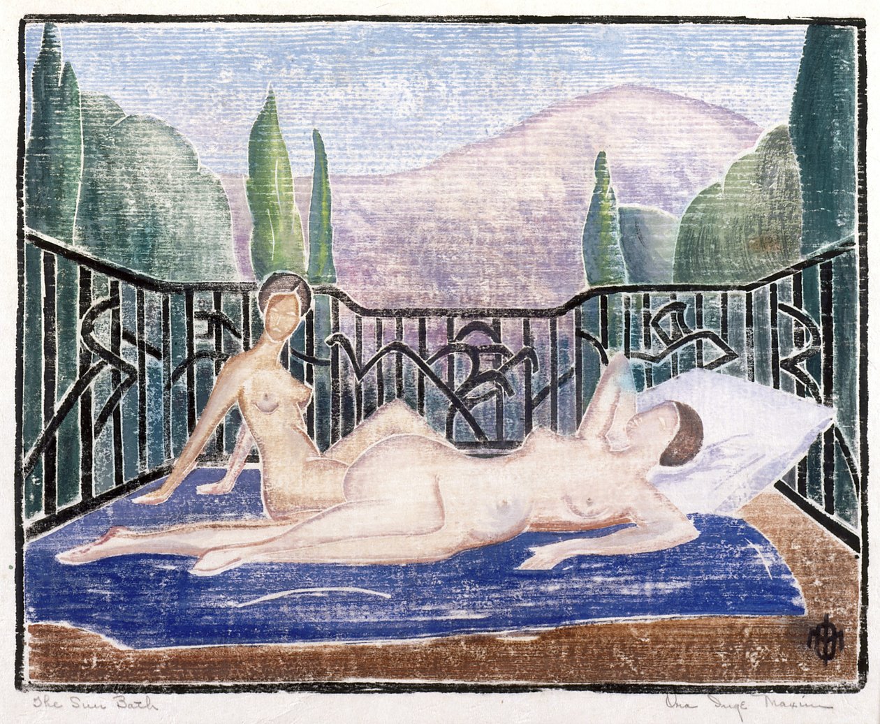 Le bain de soleil(The Sun Bath (colour woodblock print))Ora Inge Maxim |