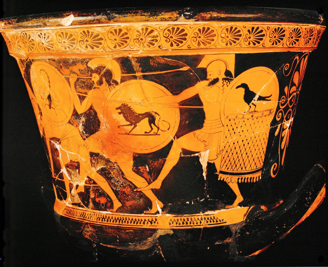 Des guerriers courant avec des boucliers et des lances ...(Running warriors with shields and spears …)Painter Eucharides |