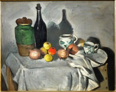 Nature morte : Pots, bouteille, tasse et fruits (huile sur toile)(Still-life: Pots, bottle, cup, and fruit (oil on canvas))Paul Cezanne |