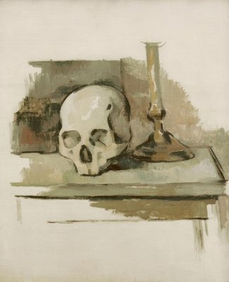 Nature morte avec crâne et chandelier, vers 1900 (Huile sur toile)(Still life with skull and candlestick, circa 1900 (Oil on canvas))Paul Cezanne |