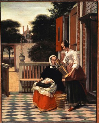 Une dame et sa servante (peinture sur toile)(A lady and her servant (painting on canvas))Pieter de Hooch |