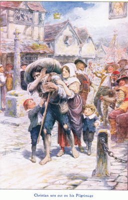 Le chrétien part en pèlerinage (lithographie couleur)(Christian sets out on his Pilgrimage (colour litho))Robert Ambrose (after) Dudley |