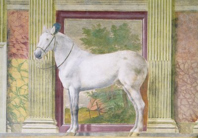 Salle des Chevaux, détail montrant un portrait d'un cheval gris des écuries de Ludovico Gonzaga III de Mantoue(Hall of the Horses, detail showing a portrait of a grey horse from the stables of Ludovico Gonzaga III of Mantua)Romano Giulio |