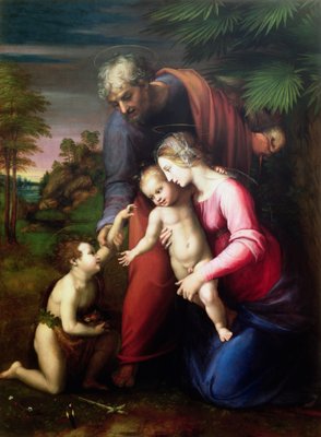 Sainte Famille avec le jeune Jean-Baptiste (peinture sur bois de peuplier)(Holy Family with young John Baptist (painting on poplar wood))Sanzio of Urbino (workshop) Raphael |