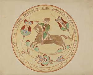 Dessin de la rosace de Chartres : Simon de Montfort (lithographie en couleur)(Drawing of the rose window at Chartres: Simon de Montfort (colour litho))School French |