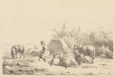 Berger et moutons(Herder en schapen)Simon van den Berg(print maker),Koninklijke Nederlandse Steendrukkerij van C.W. Mieling(printer) |