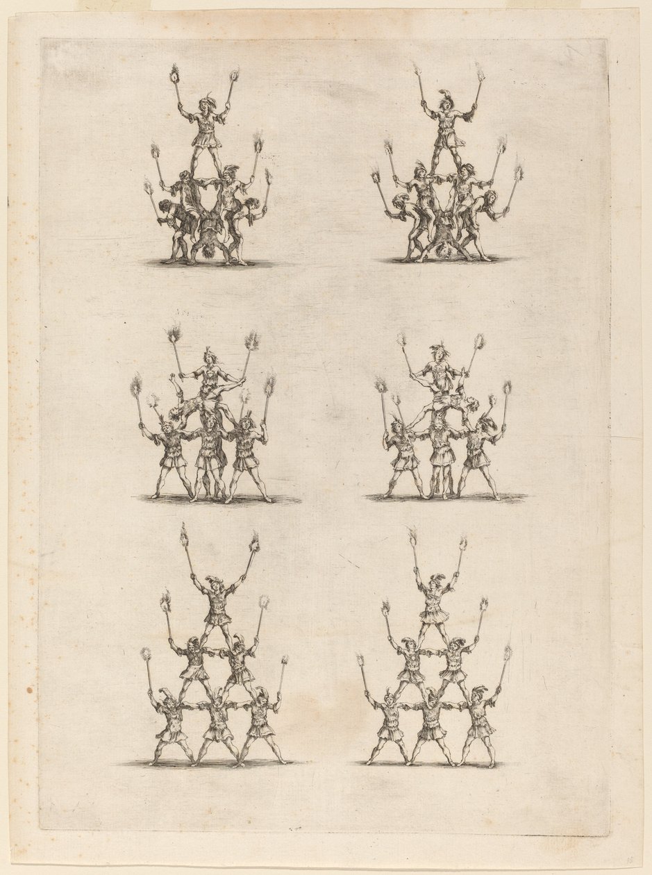Trente-six jongleurs debout en pyramides(Thirty-Six Jugglers Standing in Pyramids)Stefano della Bella |