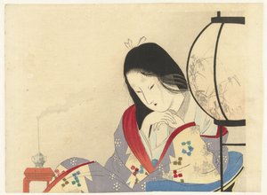 Femme voilée sur un pont au clair de lune(Gesluierde vrouw op een brug bij maanlicht)Takeuchi Keishū(print maker) |