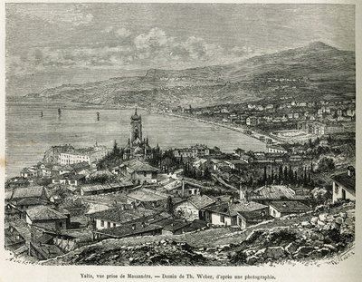 La ville de Yalta, prise de Massandra, dessin de Th.Weber, pour illustrer l'histoire Quatre mois en Russie, en 1876, par F. De Mely. Gravure dans Le tour du monde(The city of Yalta, taken from Massandra, drawing by Th.Weber, to illustrate the story Four Months in Russia, in 1876, by F. De Mely. Engraving in Le tour du monde)Theodore Weber |