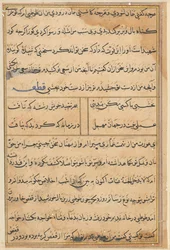 Page des Contes d'un Perroquet Tuti-nama : page de texte(Page from Tales of a Parrot Tuti-nama: text page, c. 1560. )Unbekannt |