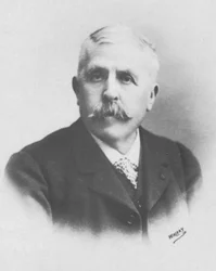 portrait · verres · les gens · mâle · visage · le travail · homme · hommes · pays · français · la france · corps · type · lunettes · métier · vêtements · robe · endroit · victorian · siècle · moustache · profession · veste · une personne · regarder loin · monochrome · auteur · journaliste · journalisme · auteur · 19ème siècle · noir et blanc · noir et blanc · dix-neuvième siècle · photograph · unknown · felix · eugène · felix potin · potin · eugène bertol-graivil · bertol-graivil · The Print Collector/Heritage Images