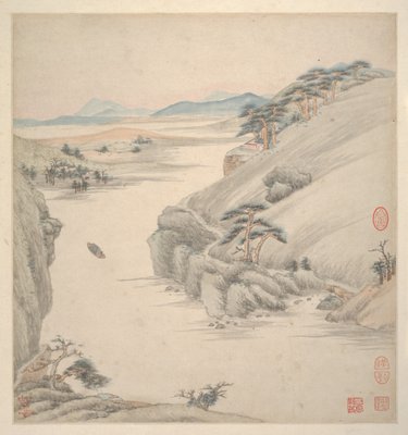 fleuve · paysage · montagne · montagnes · pays · la chine · chinois · musée · géographie · endroit · siècle · 17ème siècle · couleur · rencontré · landscape · heritage art · ink and colour on paper · ink and colour on paper · wang jian · yuanzhao · lianzhou · wang chien · jian · wang · hsiang-pi · album of eighteen leaves · album of eighteen leaves · Heritage Art/Heritage Images