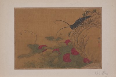 Sauterelle sur un rocher(Grasshopper on Rock, 15th century. )Wen Liang |