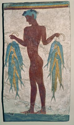 Fresque d'un pêcheur avec Coryphaena hippurus(Fresco of a fisherman with Coryphaena hippurus)anonymous |